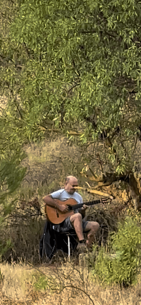 About halfway through my walk, feeling a bit emotional, I heard music playing from somewhere and followed the music to find a man, sitting in the path of the walk, just playing this beautiful music for us pilgrims, just to show his care for our journey. Brought me to tears for so many reasons today.