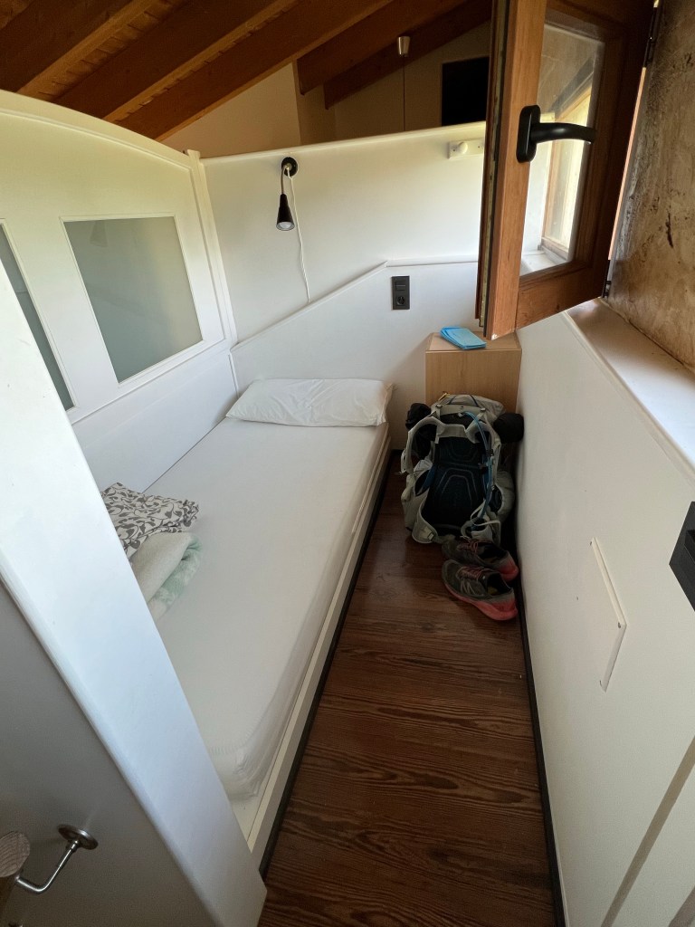 Ultimately reached my destination at Albergue La Finca, which will be my resting spot for the night. This is a family run hostile for pilgrims only and for 24 Euro you get your room and homemade dinner. Tonight was lentil soup, salad, meatballs with potatoes and melon for dessert. Served with red wine of course! This price is the common cost for most of the places I stay, unless I choose a hotel room. All of them include restrooms with showers, and oftentimes laundry service, or tonight, a washer and clothesline to dry your clothes. Ahhh the life of a pilgrim! 😊