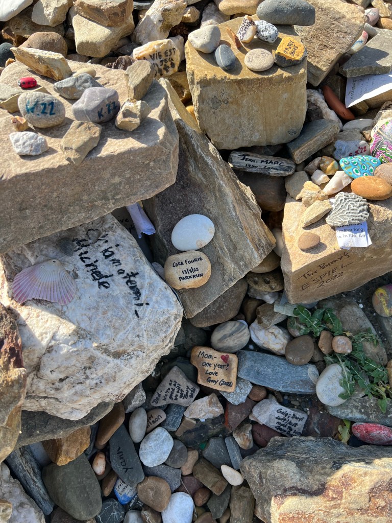 After reading your post, a lot of tears, re-reading your post and more tears there’s no way to put into words my thoughts and emotions other than to say I am so glad you left that rock behind where it belonged, that she was there with you (of course she was) and that your new rock is light and beautiful.