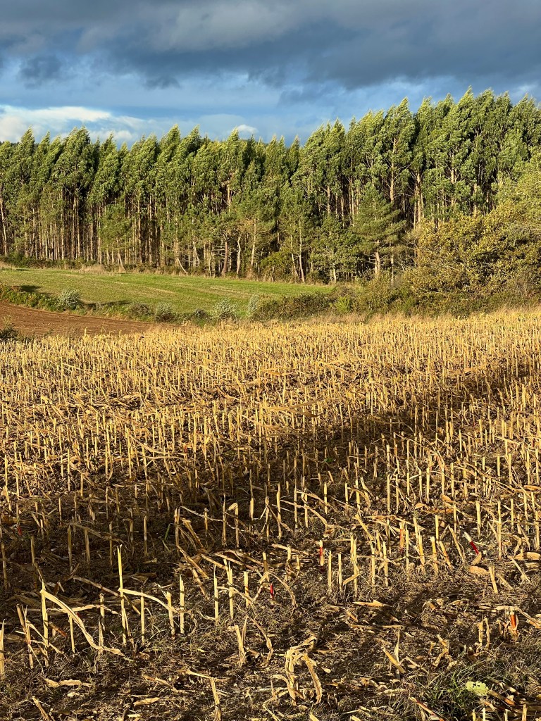 Oct 15-16 – Trekked through many towns and fields the last couple of days. I’m now 38 miles from Santiago de Compestella and will arrive on Wednesday. The last two days has taken me through beautiful countryside, cool and rainy weather, and as the trail has progressed, even the trees have changed from pine to eucalyptus.